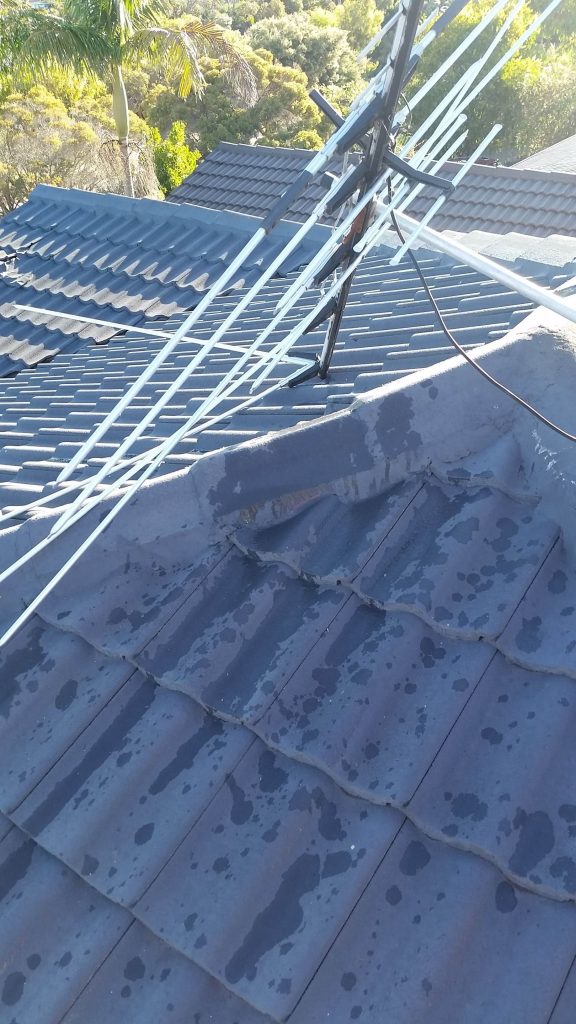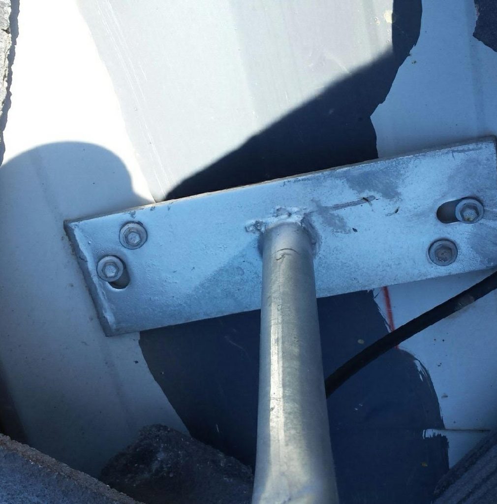 Harrisdale – Cheap antenna installers use tile roof mounts on tin roofs, this customers antenna fell over and roof has began rusting due to incorrect mount