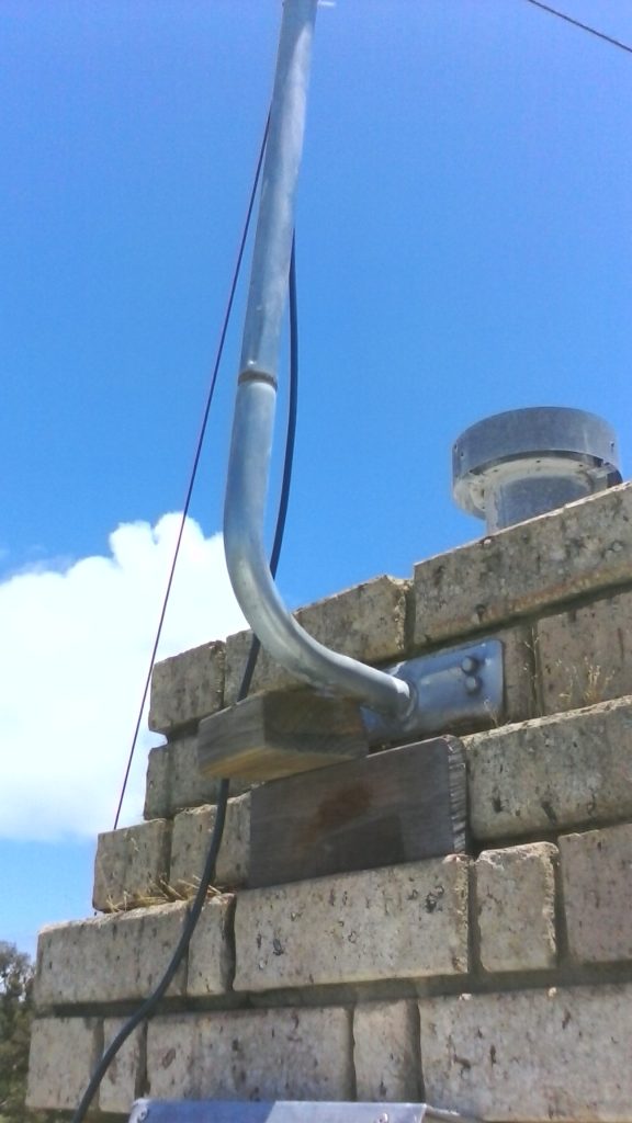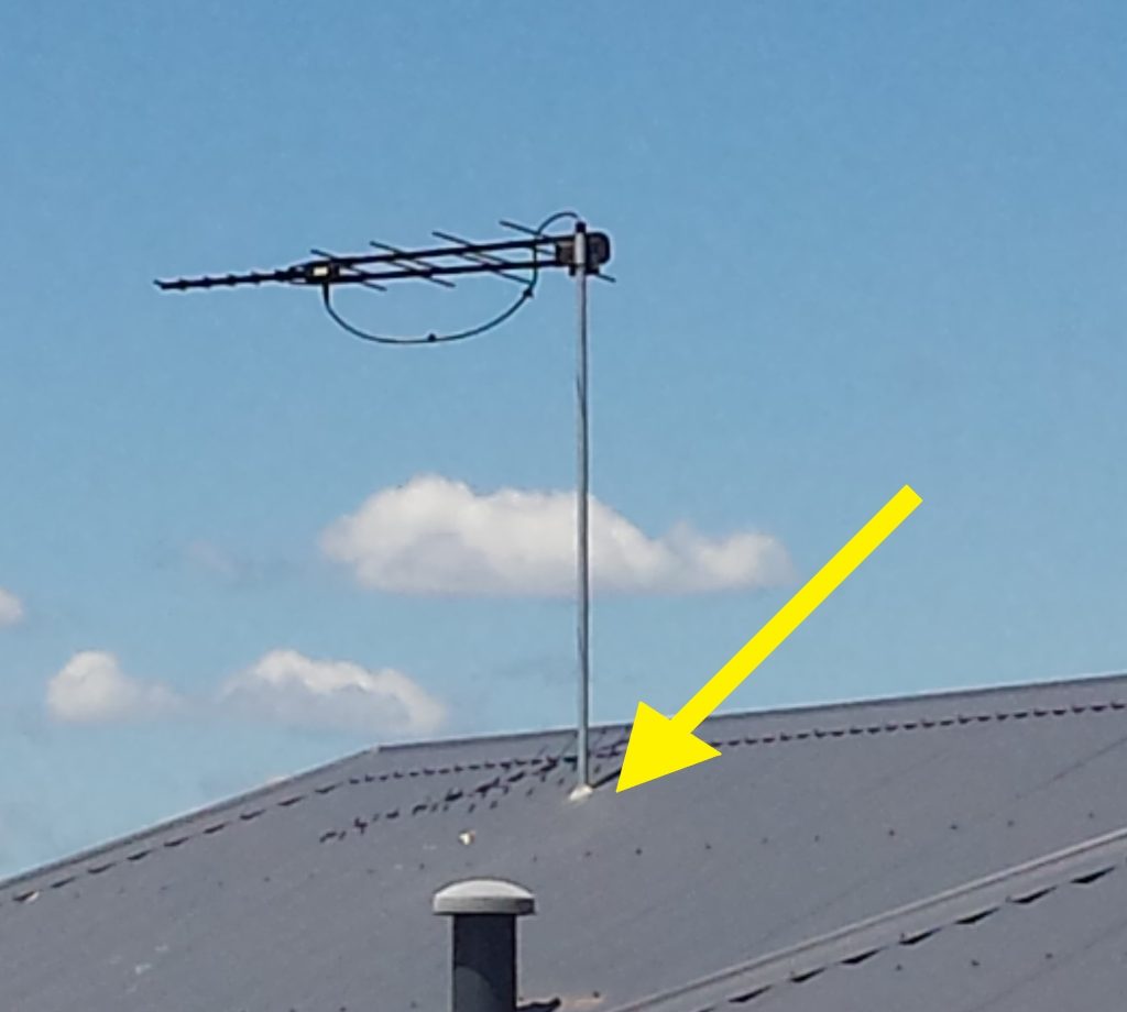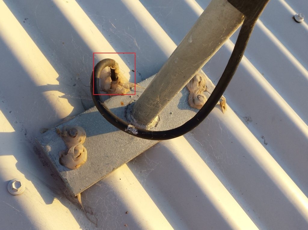 Success – Hole drilled through colourbond roof, no flashing used, small amount of sealant. No use of proper tin roof tripod mount.
