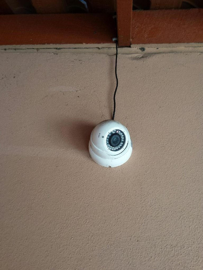 Ascot – Poor cable installation practice for security camera system, exposed coaxial cabling along wall